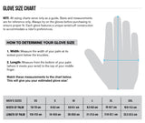 * Waterproof stretch fabric construction (topside and palm) for weatherproofing and comfort
