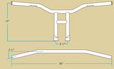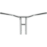 Construction: 1-inch O.D. x 0.120 wall seamless 4130 chromoly tubing. Bends are created with internal mandrels on a CNC bender to reduce flat spots in the radius, and all welded joints are precision mitered and TIG-welded. Threaded bungs on vertical uprights are CNC-machined chromoly steel with 1/2-13 t.p.i. holes to accept stock H-D mounting bolts. Available with dimples for stock and select aftermarket Harley-Davidson hand controls, or precision drilled for custom internal wiring (Sorry not available for throttle-by-wire.)